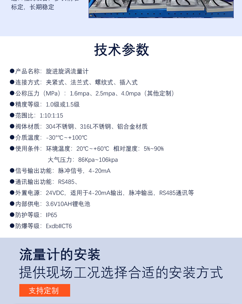 ii、溫壓補償渦街流量計主要技術參數